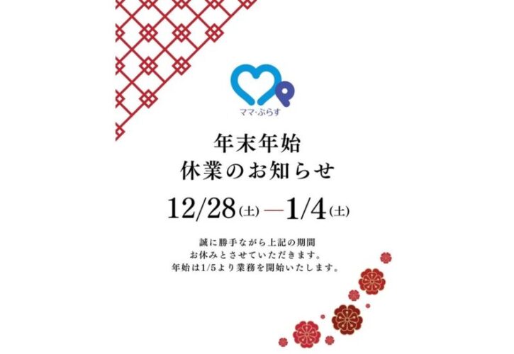 ママ・ぷらすは12月28日より年末のお休みに入り、年始は1月5日より業務を開始いたします。